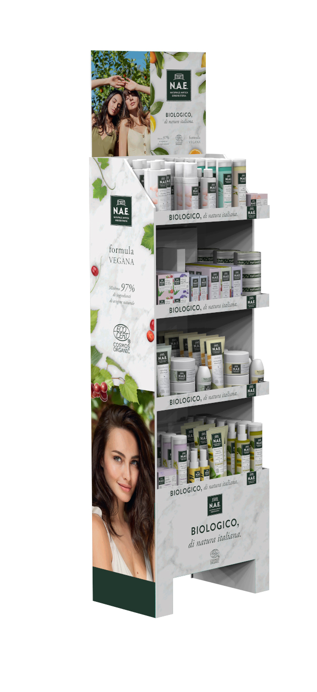 Display da terra per NAE: Naturale Antica Erboristeria Biologico, di natura italiana. Lic Packaging ha progettato e realizzato il Display da terra per NAE Naturale Antica Erboristeria, di Henkel.