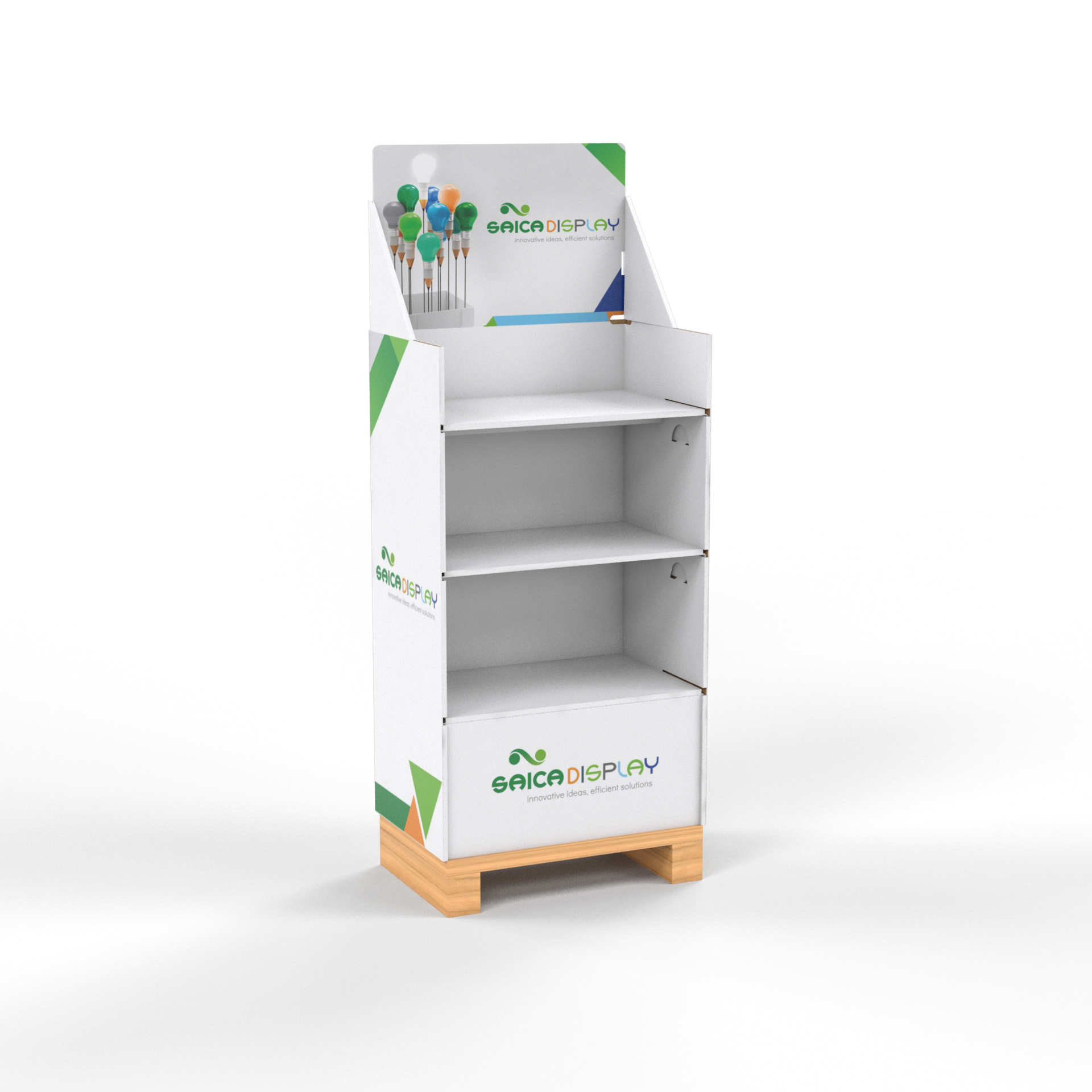 Il corpo dell’espositore è stato ideato e progettato per essere monomateriale e quindi completamente riciclabile nella carta.